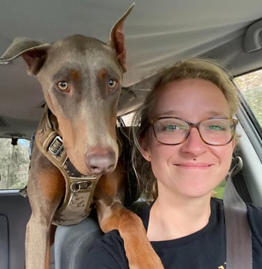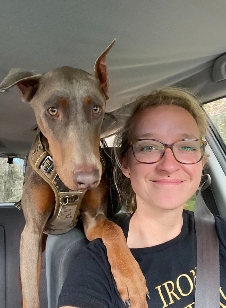 The dog in this picture is my Doberman Murphy, I adopted her in February 2024 and we're the best team!